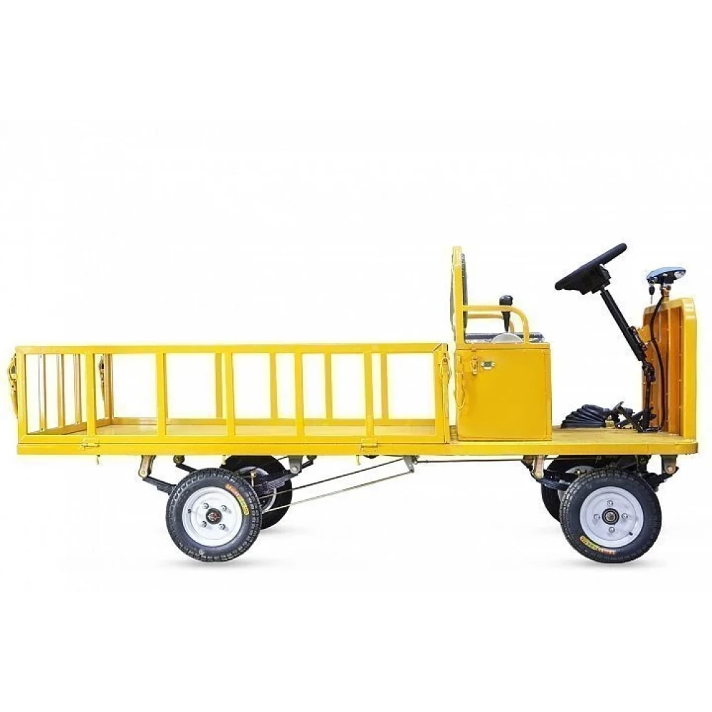 Электрическая платформенная тележка Rutrike ПОСТ имеет огромный кузов и прекрасно подойдёт для больших складов и предприятий, перевозки различных стройматериалов, а также для работы в различных транспортных и логистических пунктах.