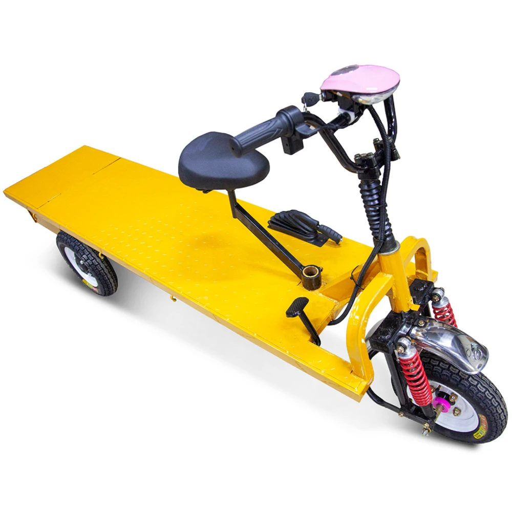 Тележка предназначена для перевозки грузов до 300 кг. Предназначена и выгодна в помещениях с небольшой квадратурой и узкими коридорами, стройках, частном секторе, базах отдыха, аэропортах, железнодорожных вокзалах. Модель оснащена бесщеточным электродвигателем мощностью 800 Вт, который способен развивать скорость до 25 км/час.