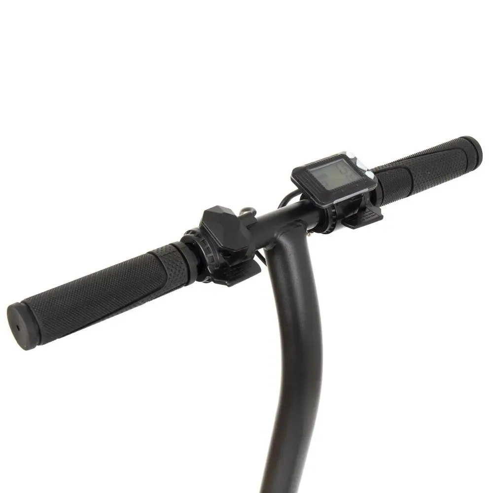 Современная модель выглядит эстетически привлекательной. Заметная среди других участников движения. Электросамокат изготовлен из облегченного алюминия, складывается до минималистичных размеров. Нескользящая дека устойчивая, размещает 2 стопы, не вызывает утомления и усталости. Прорезиненные грипсы повторяют анатомическое строение рук, не вызывают запотевания, увеличивают уверенность райдера.