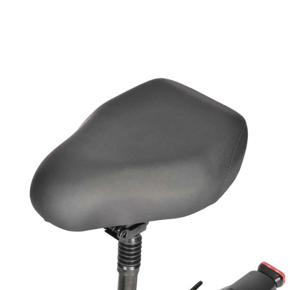 Футуристический внешний вид вызывает восторг и зависть одновременно. Большие надувные колеса (11 дюймов) изготовлены из прочной резины. Алюминиевый сплав рамы имеет небольшой вес (23 кг) и свободно выдерживает нагрузку до 125 кг. Компактные размеры 115*58*49 см и складная конструкция позволяют брать с собой в загородные путешествия. Дисковая тормозная система на каждом колесе обеспечивает быструю полную остановку. Удобное сидение идеально повторяет анатомические формы тела. Амортизация усовершенствована и хорошо скрывает дорожные ямы. Дека 22*47 см имеет нескользящую поверхность для большего удобства поездок.