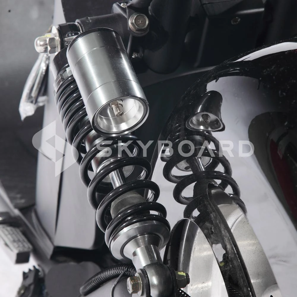 Управление электромопедом происходит через LED-дисплей, который находится на передней панели руля. Соответствующие кнопки помогают затормозить и управлять скоростным режимом. До начала поездки или в процессе движения можно выбрать один из трех встроенных скоростных режимов либо же вручную установить верхнюю границу максимально допустимой скорости. Максимальная скорость SKYBOARD BR70-2WD составляет 59 км/ч.