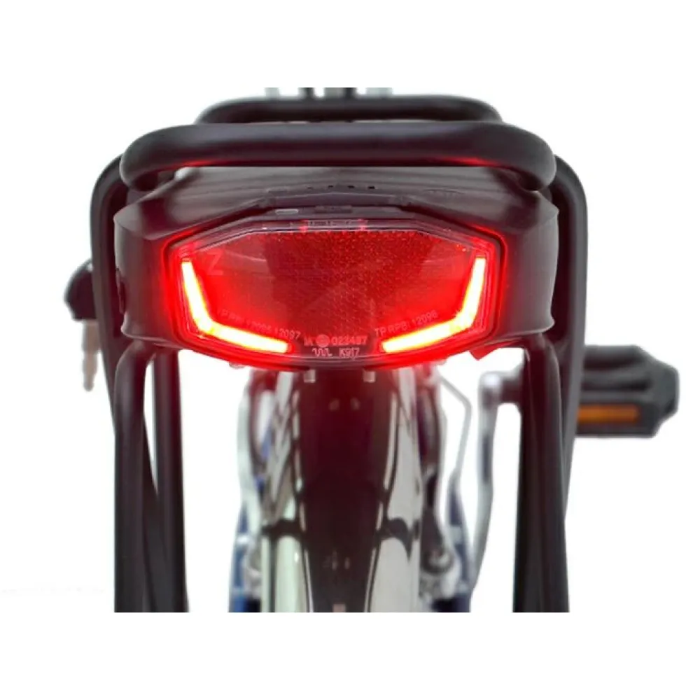Скоростные характеристики улучшены – с этого гиганта свободно можно выжать 35 км/час. Литий-ионный аккумулятор подает напряжение в 36 В, тем самым запитывая электромотор мощностью 250 Вт. Съемная батарея надежно спрятана на багажнике и быстро заряжается за 5 часов от обычной розетки 220 В. Ободные колеса 28 дюймовые колеса Power VBR-207A подарят пользователю незабываемую радость от быстрой езды по неровным дорогам. Поездки за покупками станут еще проще благодаря оснащению электровелосипеда вместительным багажником, на котором комфортно перевозить покупки и транспортировать небольшой груз.