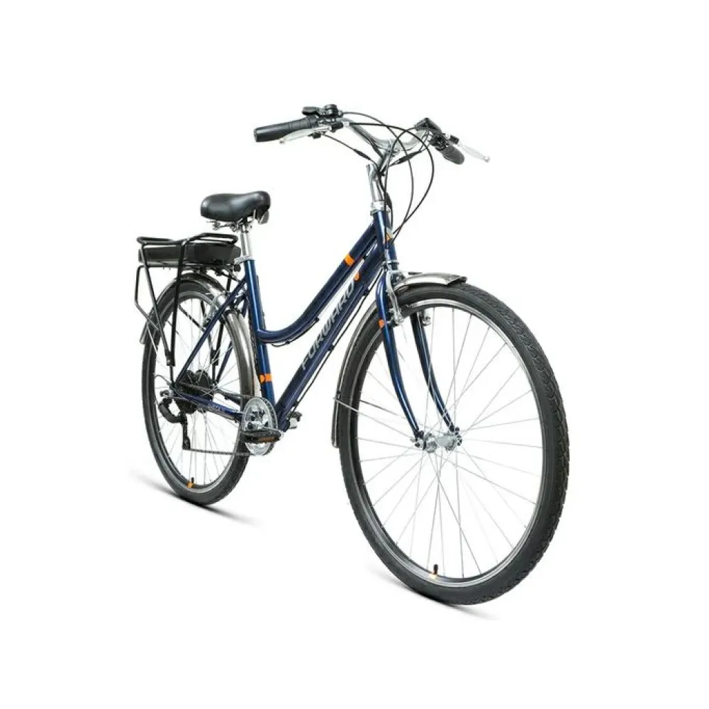 Электровелосипед Forward Omega 28 250W (2021), темно-синего цвета – стильное дополнение к образу современного пользователя. Низкая модель конструкции и комфортное положение стальной рамы делают технику универсальной и позволит эксплуатировать райдерам обоих полов. Передняя вилка с усиленными амортизаторами и половинчатая ручка на 7 скоростей рассчитаны на поездки по городскими и парковым зонам, выездам на природу и за город. Надежность сборки и высокое качество деталей полностью соответствует запросам капризных пользователей.