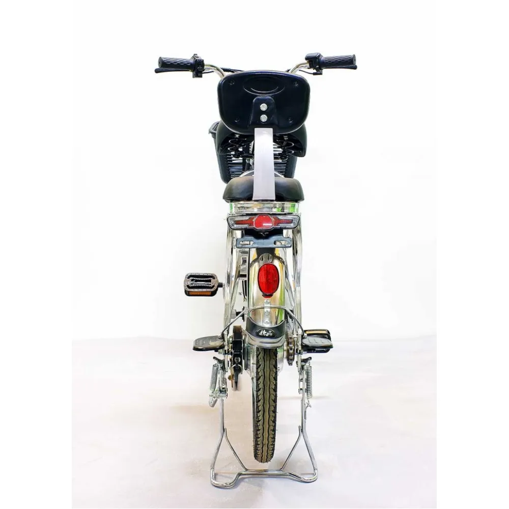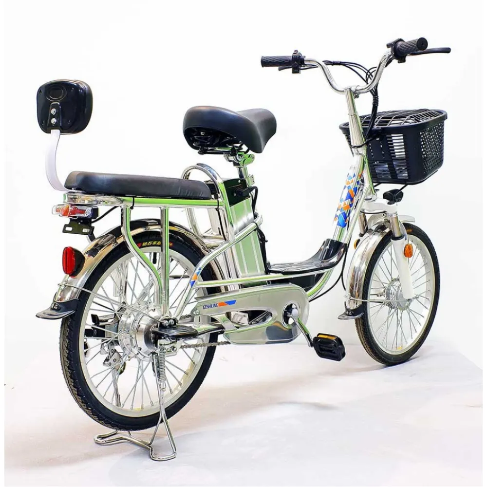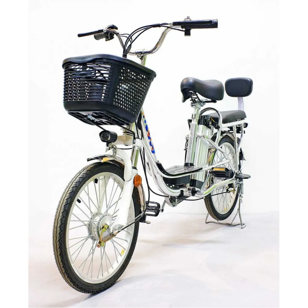 Комфорт и практичность техники обеспечены вместительной передней корзиной, удобной для посещения магазина. Электровелосипед оснащен водительским и пассажирским сиденьем со спинкой. Оба мягкие и удобные, повторяют анатомические части тела, не допускают усталости при передвижении на дальние расстояния.