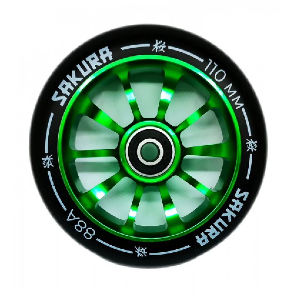 Колесо для трюкового самоката Haevner алюминиевое (110мм/ABEC 9) черно-зеленое